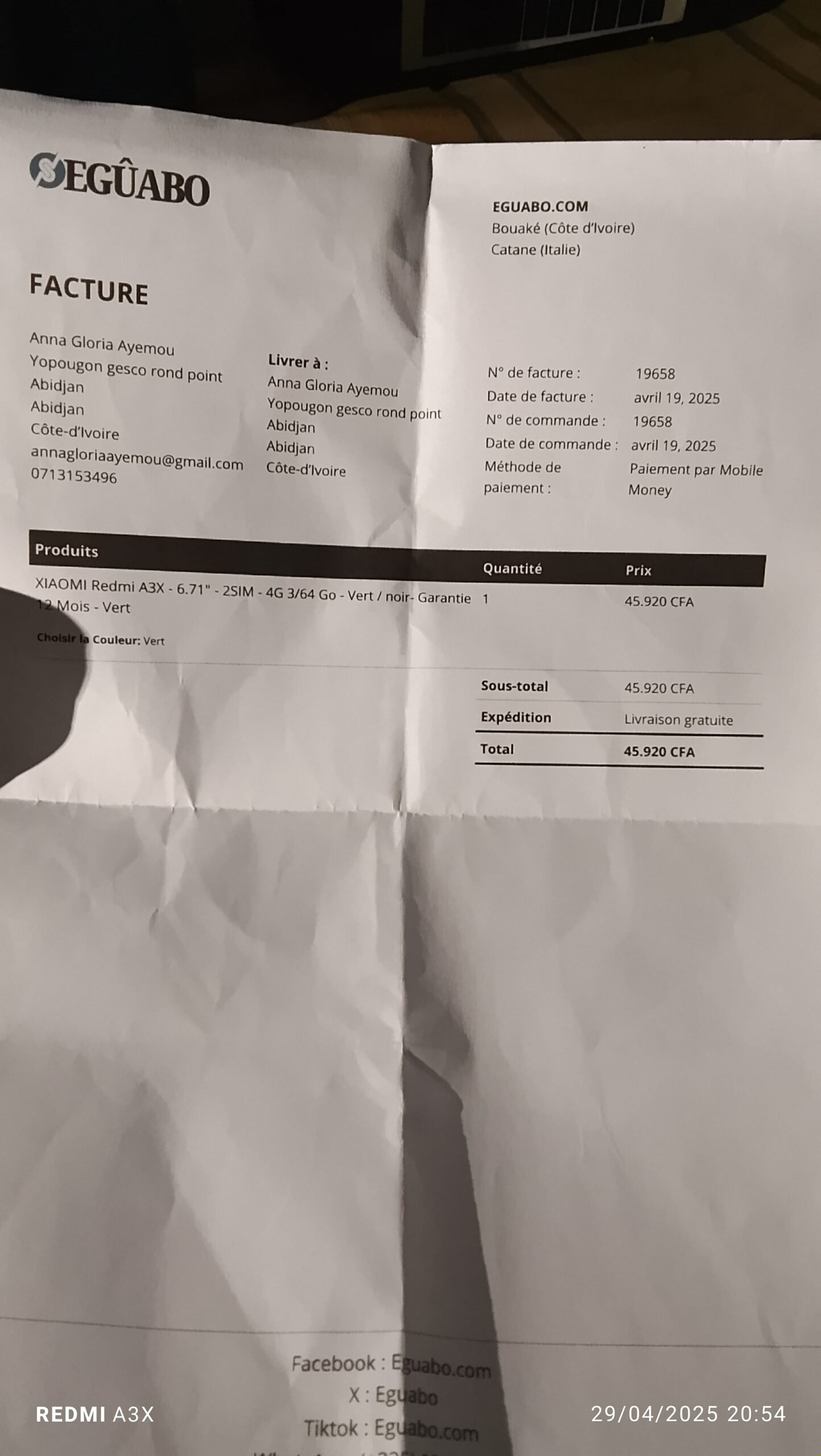 Notre coursier vous livre à l’adresse indiquée.